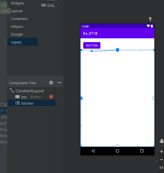 layout을 불러올 Activity_main에 btn과 llistview를 만들어준다
