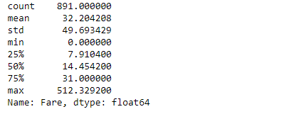 # 일반적인 사람들은 중앙값 기준으로 14정도 내고 승선했을 것 (= 대푯값)