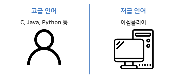 - 고급언어 : 사람중심의 언어 / 저급언어 : 기계 중심의 언어