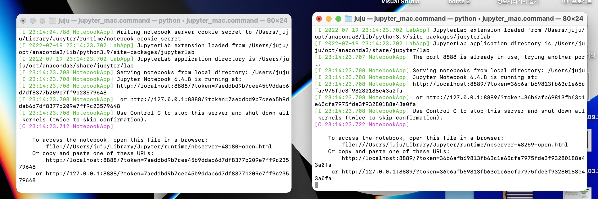 ios 기준 터미널 두개/ window는 cmd 창이 뜨는데 종료하면 에러가 난다!