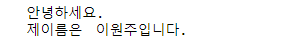 print('안녕하세요.\n제이름은\t 이원주입니다.')