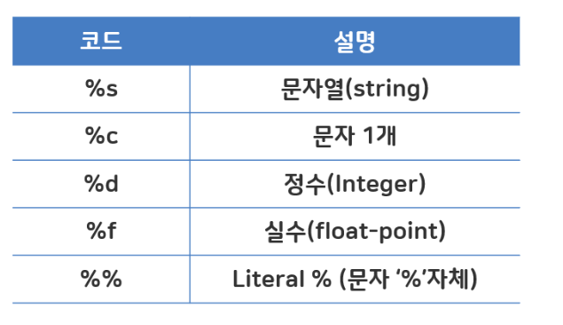 문자열 포멧 코드