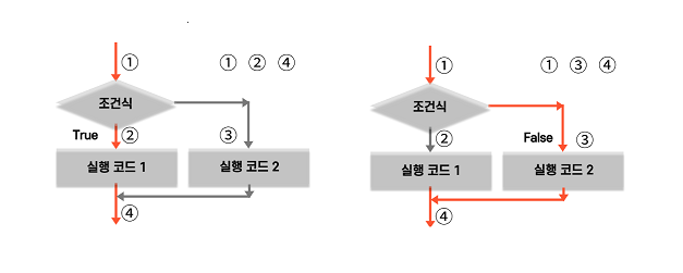 - 주어진 조건을 비교하여 조건에 만족할 경우 지정된 명령문을 실행하고 만족하지 않을 경우 다음 단계의 명령을 실행하는 구문