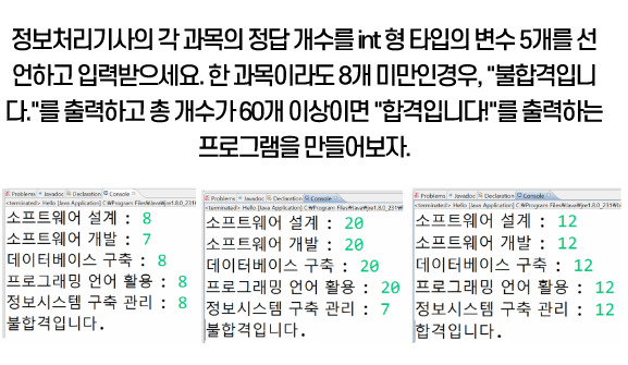 - 코드는 위에서부터 차례대로 실행된다. 그러므로 만약 totalScore > 90 이라면 위에 작성한 코드가 실행되기 때문에 totalScore >= 80 조건만 걸어주어도 된다.