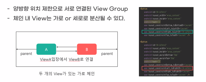 - 제약조건(Constraint)을 사용해 화면을 구성하는 Layout