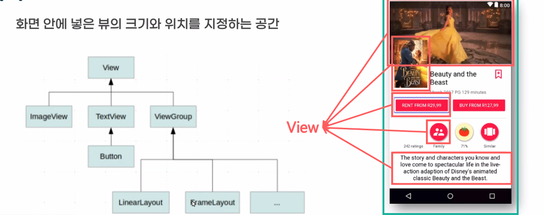 - 복잡한 layout을 단순한 계층구조를 이용하여 표현할 수 있는 ViewGruop