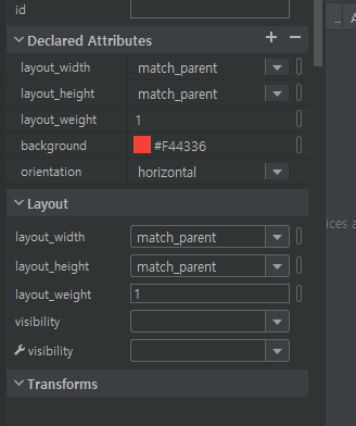 attributes 내 layout_weight를 1로 설정 해 주자.