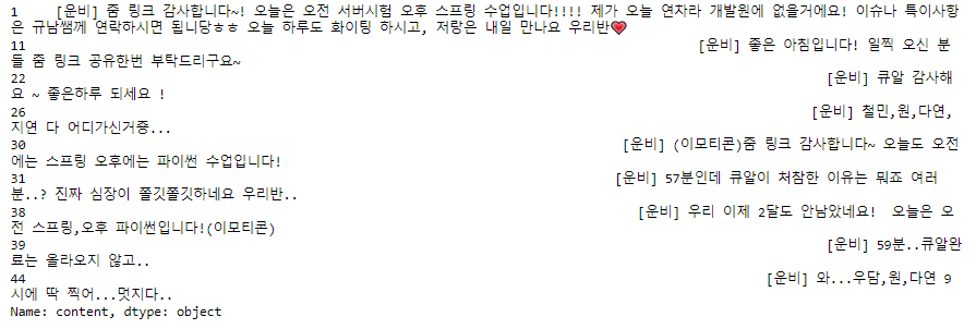 전처리한 데이터 content에 덮어 담아주기